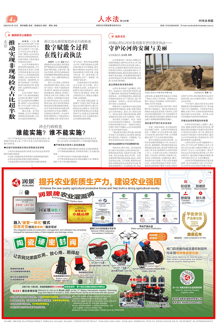 3月15日,《中國(guó)水利報(bào)》第5774期第4版刊登潤(rùn)景陶瓷硬密封灌溉閥廣告,向水利行業(yè)傳遞農(nóng)業(yè)灌溉領(lǐng)域的創(chuàng)新技術(shù)。